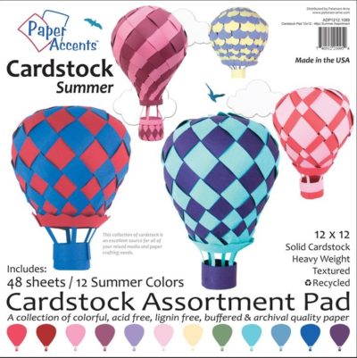 Paper Accents Cardstock Pads with a collection of acid-free, lignin-free, buffered and archival quality paper. 12″x 12″ Summer Assortment 48pc. A colorful collection of solid color cardstock, 4 each of 12 coordinating colors. Heavy-weight, recycled, and with a textured, muslin-like, finish. An excellent source for all your paper crafting and mixed media needs. Great for paper flower creations.