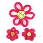 Includes 3 self-adhesive chenille flowers with painted metal centers.
